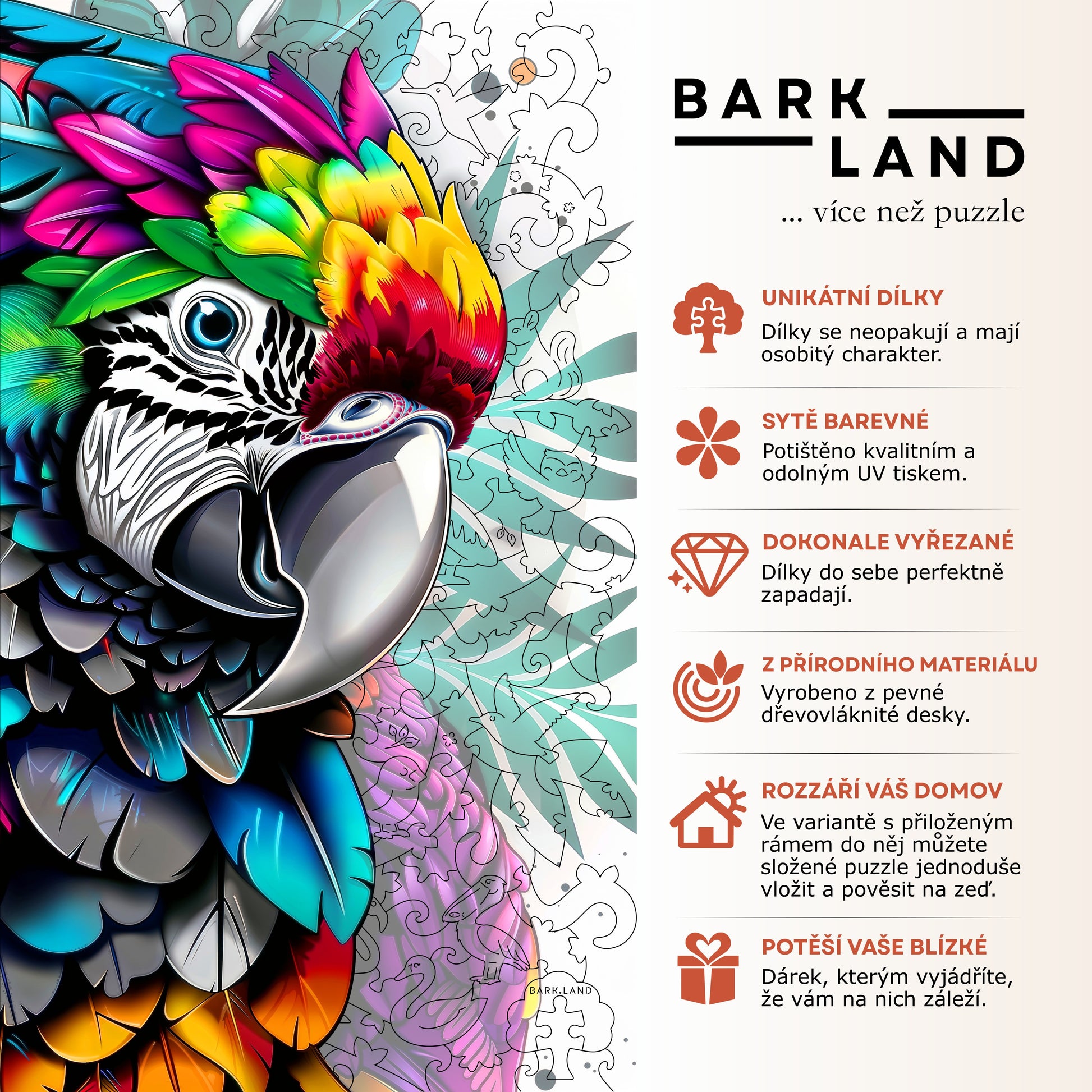 Poskládané dílky, inspirované přírodou a jejími obyvateli, společně tvoří fascinující obrazec exotického ptactva a stromu života – vyzařující harmonii, propojení a energii přírody. Živý motiv papouška navíc dodává celé skládačce kouzelný charakter. Hotový obraz tak nejen baví při skládání, ale může být elegantně vystaven a stát se ozdobou vašeho domova.